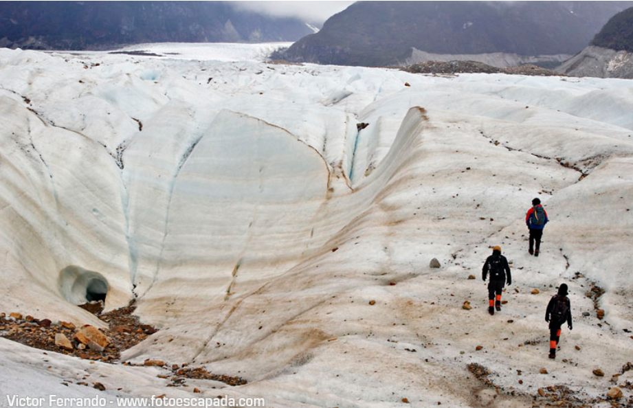 REGULAR GUIDED EXCURSION – MINIMUM 2 PASSENGERS – FULL DAY This treking is on the Exploradores Glacier, located 52 km west of Puerto Tranquilo. The starting point is the Visitor’s Centre of the park and the hike is approximately 6 hours long. At first it is on dirty and rocky ice and later on the clean and white ice of the glacier. It is also possible to walk into the different ice formations and caves. It is a full day activity which is not hard but exceptionally long and tiring. The guides are certified in first aid, they have VHF radio for contact with the visitor’s centre and oversee a group not larger than 7 persons. The excursion includes to walk on the ice, the entrance fee to NP Laguna San Rafael and a snack. The trekking is subject to weather conditions. Also, the excursion can include, for an extra fee, the ride from Puerto Tranquilo.