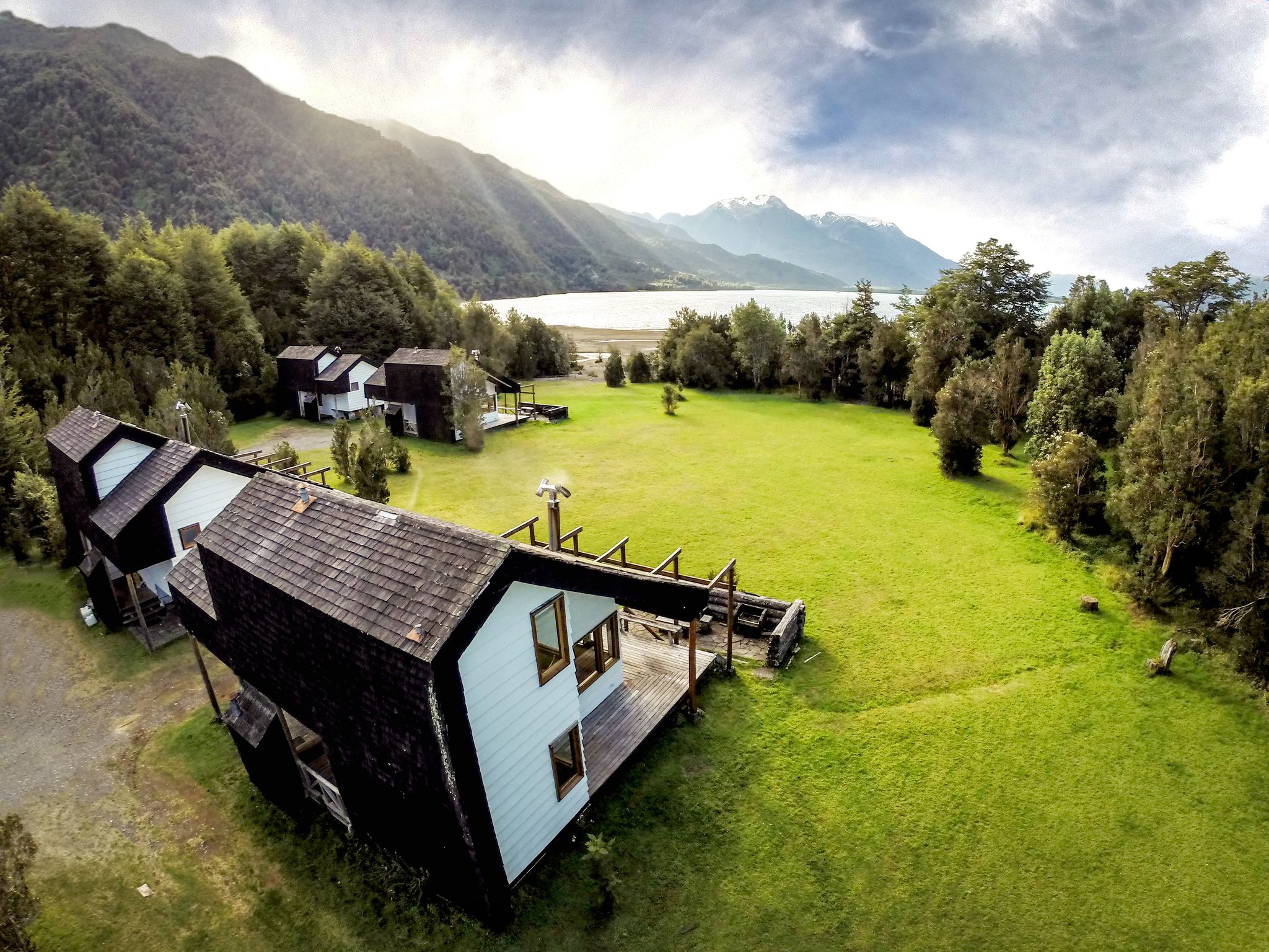 The Yelcho hotel is located on the Austral Road and by the shore of the Yelcho Lake, surrounded by snow topped mountains, rainforest, and free running rivers. The hotel setting is a natural park and pastures for cattle and horses, the main building holds the common spaces and 6 rooms, the cabins – 8 in total - are set with direct access to the lake beach. Staying at the hotel, different activities can be done in the area such as: hikes, horse back rides and amazing fishing.